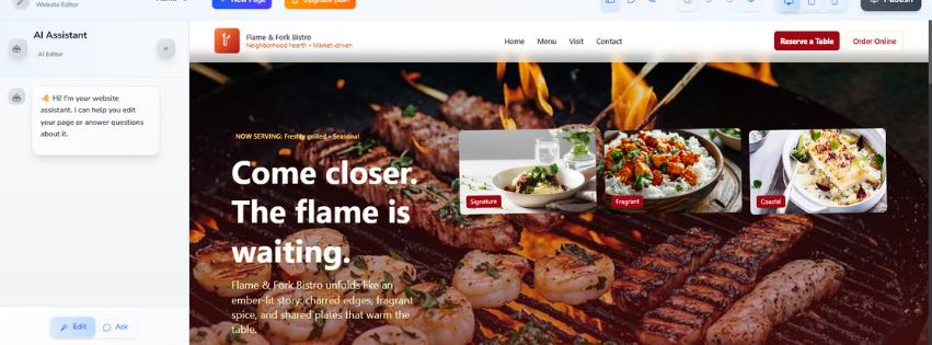 Your industry shapes your site. The ai website builder knows restaurant sites differ from consulting sites.